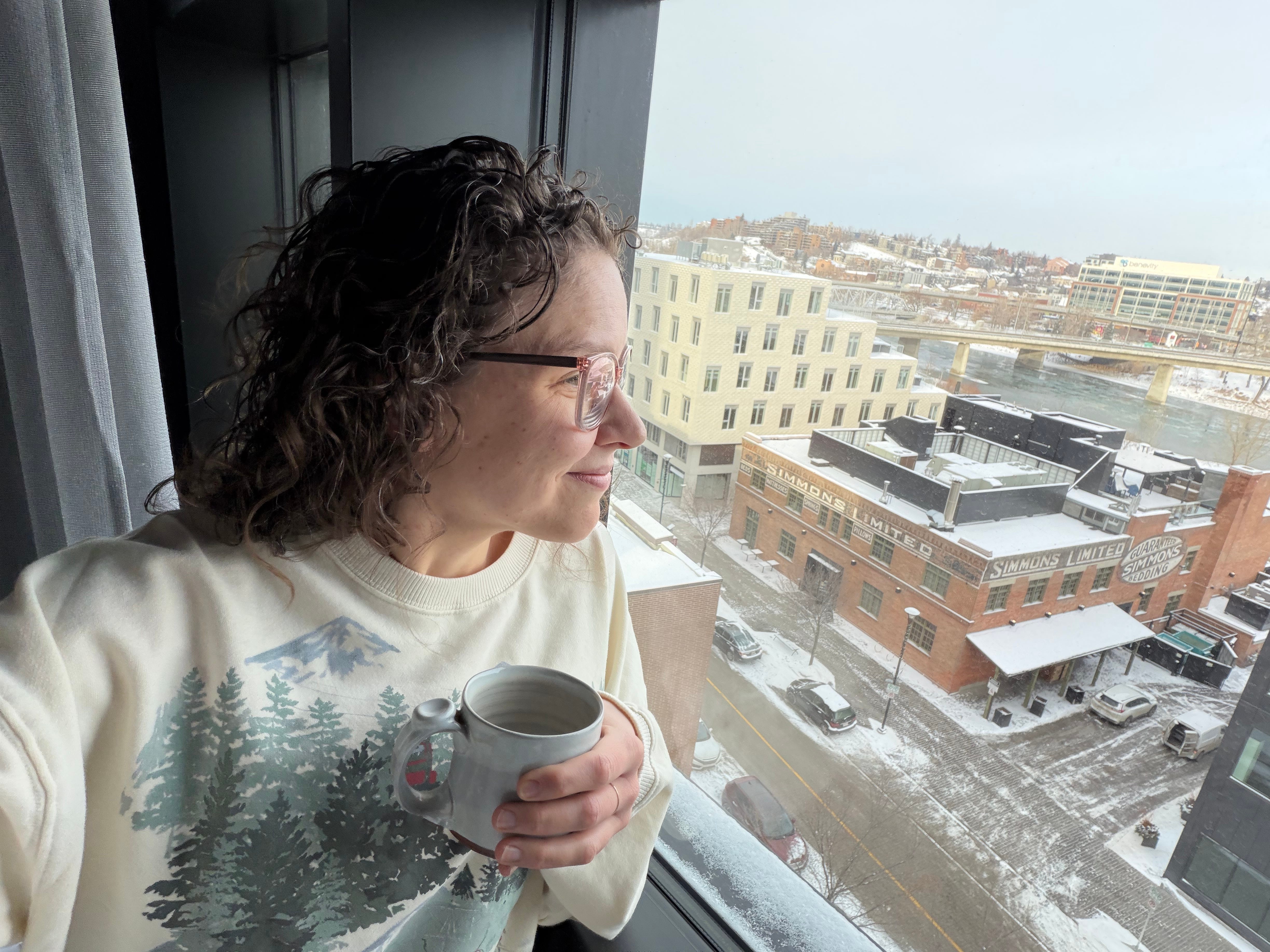 I’m currently sitting downtown at one of my favourite coffee shops, Phil and Sebastian - located in that Simmons building pictured above. Last night, Trent and I got to spend the night in a hotel that he’s partnered with for students coming to Calgary to take classes from him. The hotel has been so kind and offer us a discount to stay as well! When I got to our room, there was a notebook left for me on the desk with a note from the Business Manager saying she knows I’m a writer (Trent told her) and she hopes I feel inspired during my stay so she gifted me an unlined notebook!