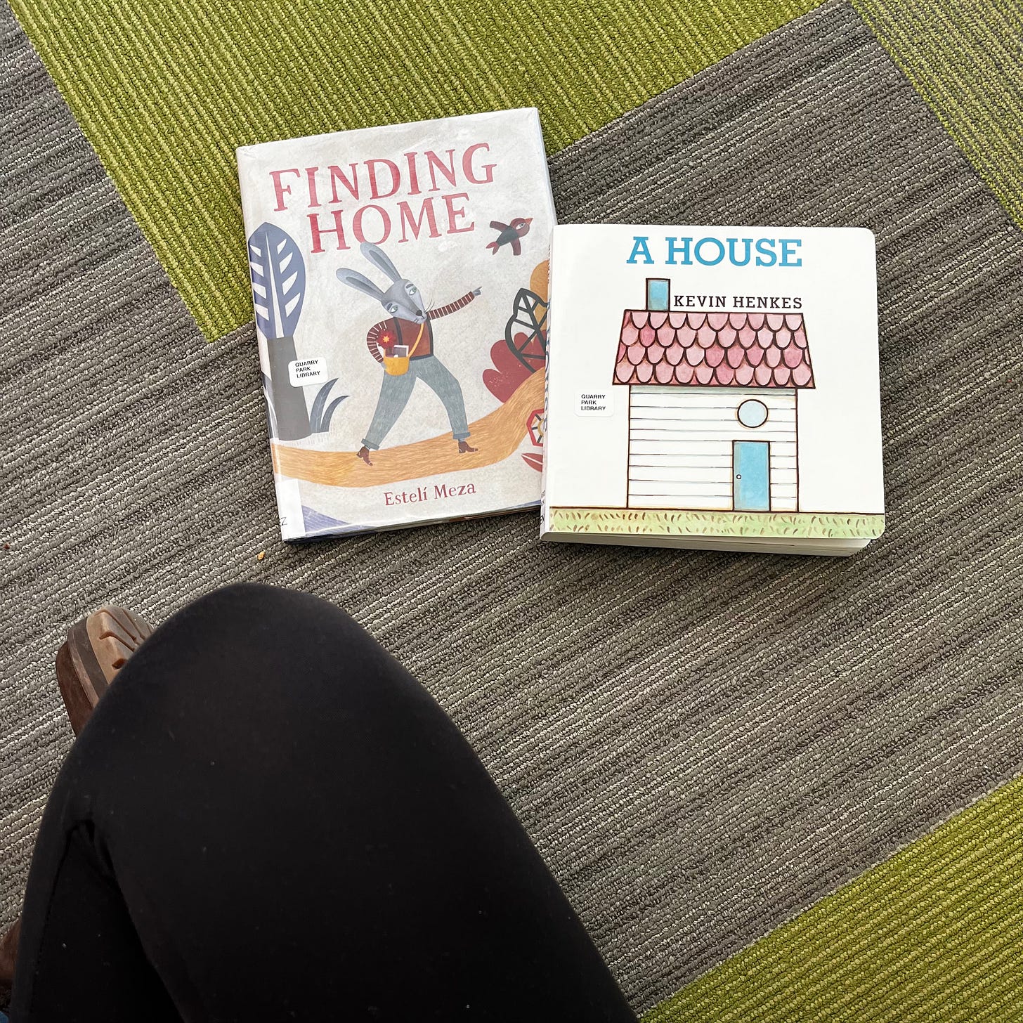 Finding Home by Estelí Meza. Conejo goes in search of his home after loosing it to a wind storm. While he doesn’t find the home he lost, the last page ends like this: “Conejo did not find his old house. But he found his way. He filled his new home with memories. A photo. A flower. A book. And plenty of music and stories.”