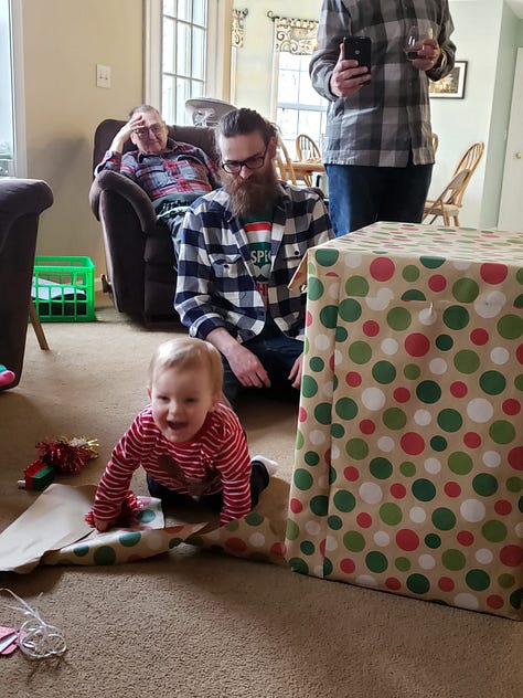 My mom continued to care for him more and more. While he lived alone, he’d come stay with my parents for weeks at a time, earning his room the title of “Grandpa’s room” where some clothes stayed throughout the year. Mom always encouraged us to call him and set up the camera so he could see us when we called.