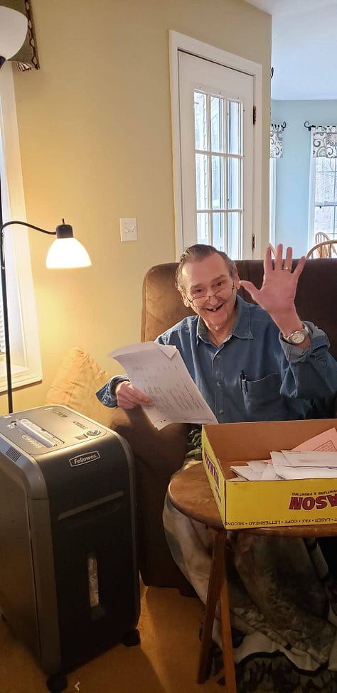 As our young families grew, he’d sit in “G-pa’s chair” and watch. He did his word searches or let his eyes zone while watching a crime show. The look on his face said he was just content to be with family. Satisfied to watch the kids play, to hear our conversations though rarely adding to them.